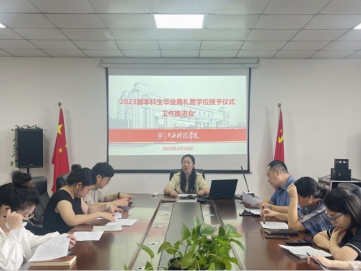 2023年6月26日上午10:50,教务处在J1-314会议室召开了2023届本科生毕业典礼暨学位授予仪式工作推进会,教务处处长张晓宇、副处长秦琛、辛增念、各科长及相关工作人员参加了会议。会议由教务处处长张晓宇主持。