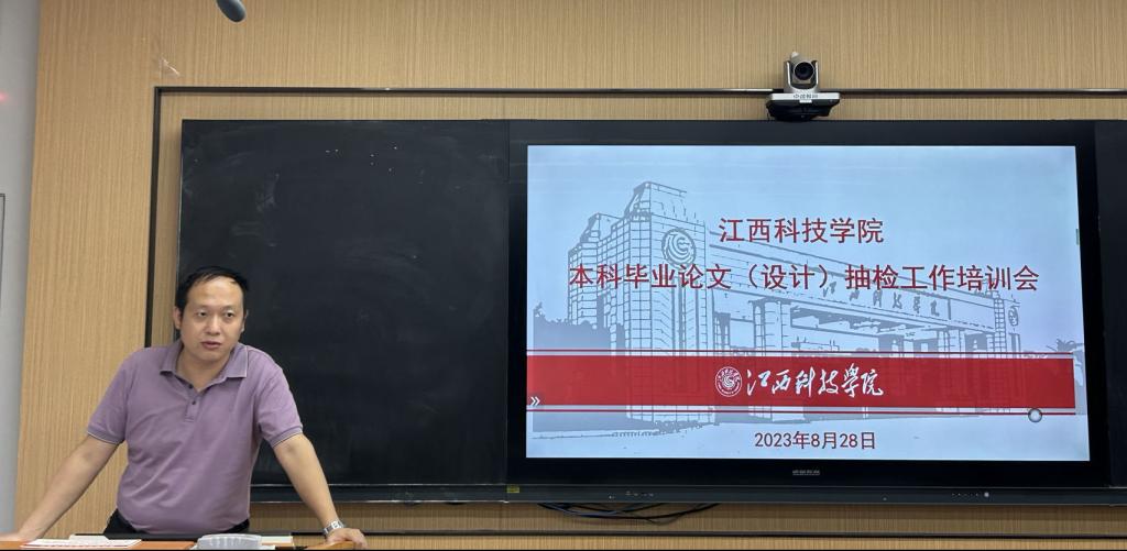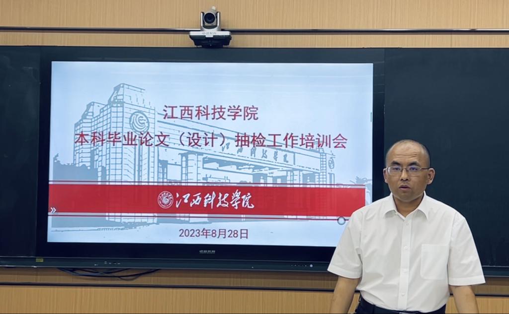 8月28日下午,教务处在S1-219智慧教室组织召开了2022-2023学年本科毕业论文 (设计) 抽检工作培训会。各学院教学副院长、分管毕业论文(设计)工作教学秘书、教研室主任、专业负责人及相关部门工作人员参加会议。会议由教务处副处长辛增念主持。