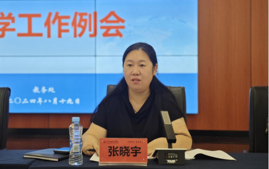 教务处处长张晓宇对七、八月份教学工作完成情况进行了总结汇报,对九月份的教学工作进行部署。张晓宇处长在会上梳理了毕业论文(设计)指导老师选派、学籍信息核查、公共日语课程申报等重点工作内容。同时对新学期补考、新生分班、教室卫生维护、教师培训和实践教学课表上报等工作进行了部署,她强调各学院要明确重点任务,注意时间节点,确保各项教育教学工作有序高效推进。