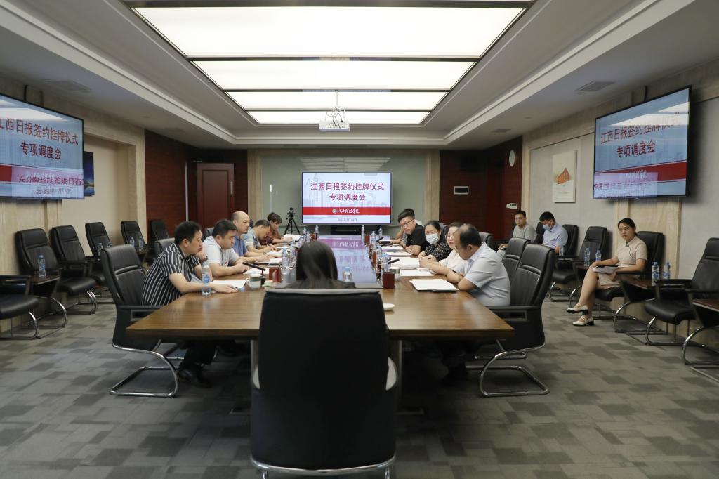 9月14日下午,我校在行政南一楼第三会议室召开江西日报社签约挂牌仪式专项调度会。校长张海涛,副校长李玮、陈辉出席会议。相关部门、单位负责人参会。