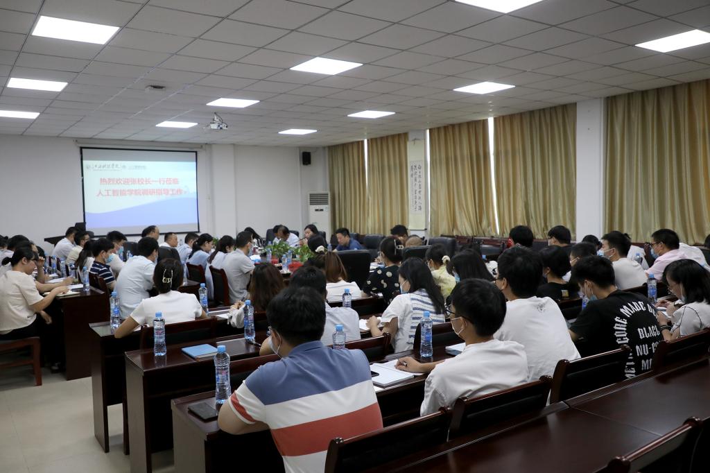 8月31日下午,张海涛校长深入人工智能学院调研指导工作。副校长李玮、陈辉陪同调研。校(党)办、人事处、科研处、教务处、协同创新中心等部门负责人一同参加调研。