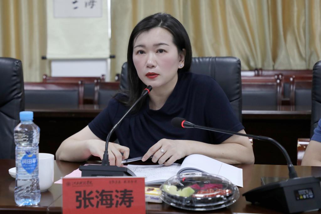 张海涛校长首先分享了自己在2022年全省高校党委书记校长暑期研讨班上聆听关于教育数字化转型与教育大脑主题辅导报告的收获和启发。她指出,无论是政府还是企业,都在倡导数字化转型。同样,高等教育也受到数字化的冲击,必须要进行变革,要快速迈入数字化新时代。在人工智能助推教育数字化转型中,人才培养是关键。她表示,我们学校专门成立人工智能学院,在人工智能的人才培养过程中,要思考人工智能人才的培养体系(即初级应用型人才、技术娴熟型人才、前沿专精型人才)以及学科和专业如何形成特色。数字化时代必须培养数字化人才,数字化人才培养要用数字化手段。
