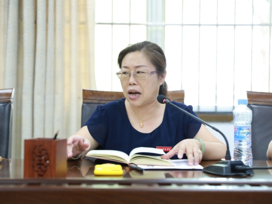 教务处秦琛副处长对分管工作进行补充,如校级课程思政示范课汇报答辩会,本科、专科课程归属相关工作,本科人才培养方案入库与汇编相关工作等。