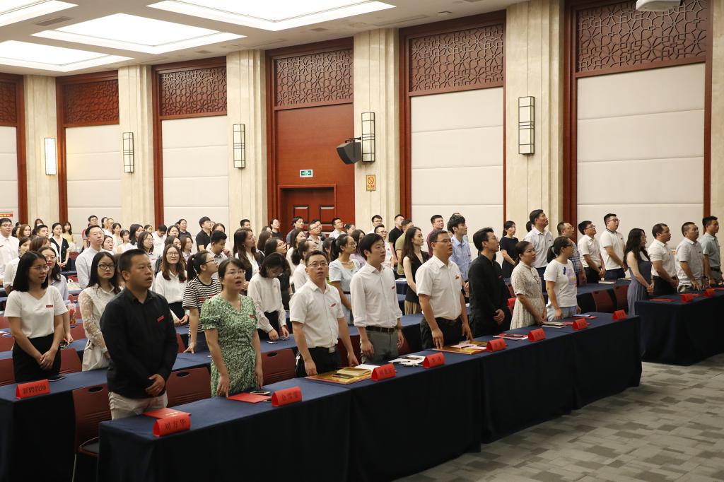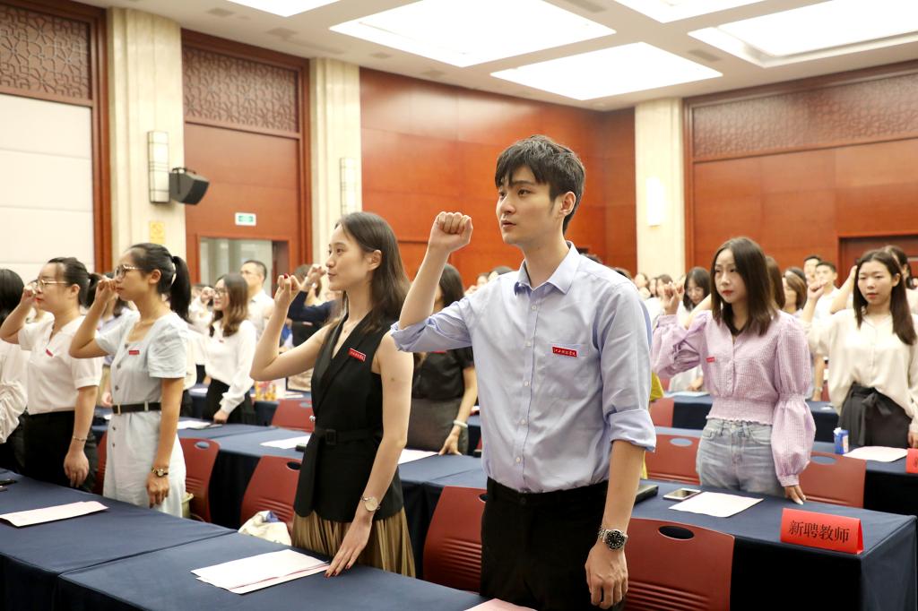在观看学校庆祝教师节专题VCR后,张海涛带领新入职教师宣誓。一声声誓言铿锵有力,响彻全场。接着,新入职教师代表、文化与传媒学院教师毛雷宣读《365英国上市公司官网教师师德师风承诺书》,全体新入职教师签订《365英国上市公司官网教师师德师风承诺书》。