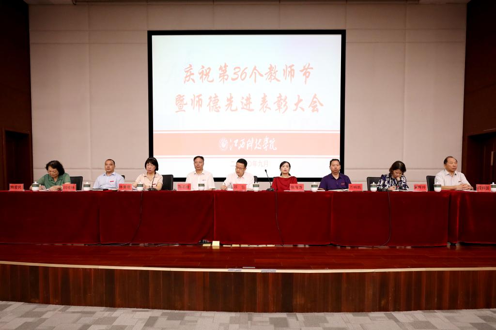 9月10日上午,我校在行政南一楼第一会议室召开庆祝第36个教师节暨师德先进表彰大会。校党委书记邓弘、校长张海涛等全体在校领导出席大会。大会由副校长、工会主席林素君主持。