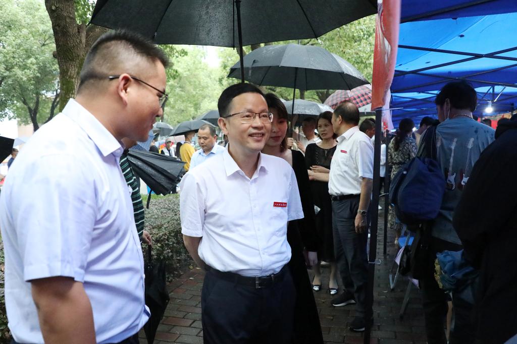 当天上午,校党委书记邓弘、校长张海涛等在家校领导冒雨深入迎新工作一线巡视,了解新生报到工作的开展情况。在各学院迎新接待点、新生开学报到大厅等地,校领导听取了新生报到情况汇报,向参与迎新的老师和同学表示慰问。在家长休息区和学生宿舍,邓弘、张海涛等与新生家长亲切交谈,代表学校欢迎新同学加入江科大家庭,嘱咐大家在学习和生活上遇到困难,可以向学校寻求帮助;鼓励大家做好人生规划,在江科学有所成,并感谢家长对学校的信任和支持。