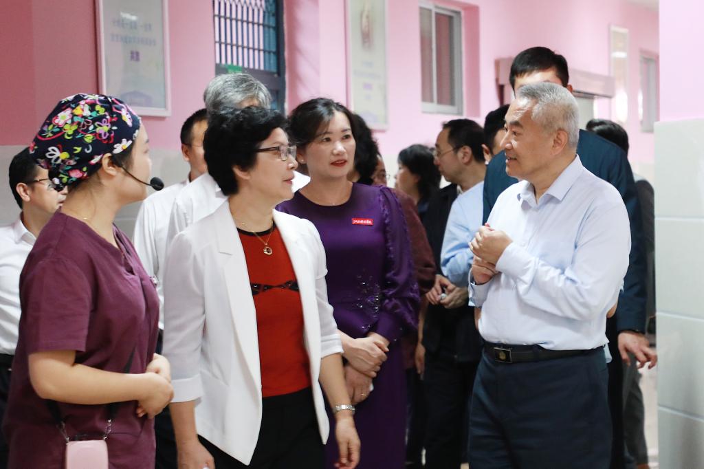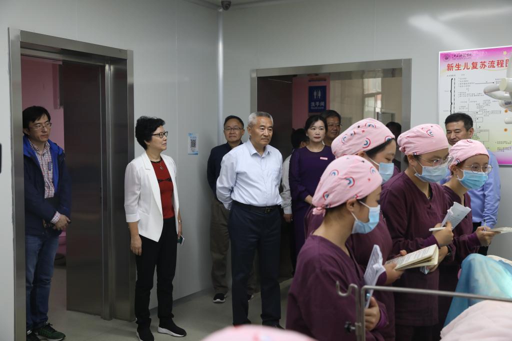 图为:全国政协副主席邵鸿参观学校医学院助产实训中心。