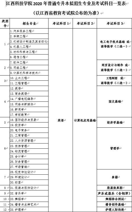 根据《江西省普通高校推荐选拔优秀高职高专毕业生进入本科阶段学习暂行办法》(赣教高字[2019]17号文)文件精神,现将365英国上市公司官网2020年普通专升本拟招生专业及专业考试科目予以公布。具体如下: