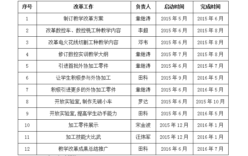 第二阶段(2015年6月—2015年8月):改革数控车、数控铣、电火花线切割工种教学内容,修订数控实训教学大纲。