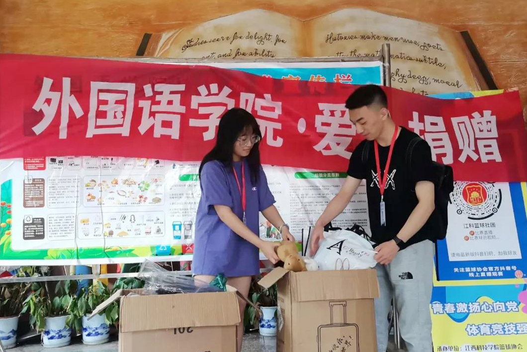 外国语学院和教育学院的青年志愿者们走进三联特殊教育学校开展志愿服务活动,为小朋友们送去关心和欢乐。他们带着在学校收到的书、文具、玩偶和衣物等捐赠品送到小朋友们手中。在三联特殊教育学校,志愿者和小朋友们玩游戏、学手语。
